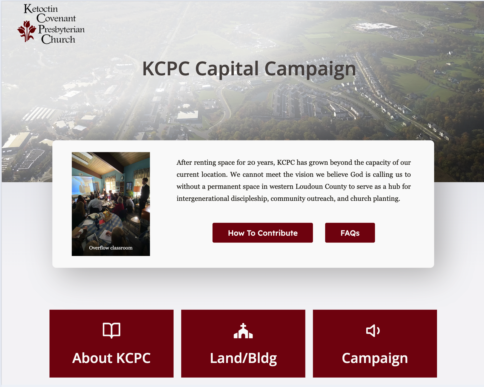 “God has given KCPC a wonderful vision for intergenerational discipleship, local outreach, and church planting. At the same time, He has been increasing our numbers beyond the capacity of our current rental situation, leading us to consider whether He might be calling us to establish a permanent space in western Loudoun.”